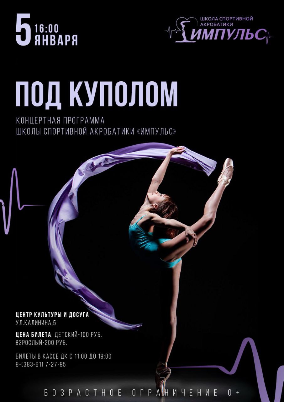 5 января в 16:00 ждем вас в Центре культуры и досуга на яркое шоу — концертную программу с участием воспитанников школы спортивной акробатики «Импульс»!