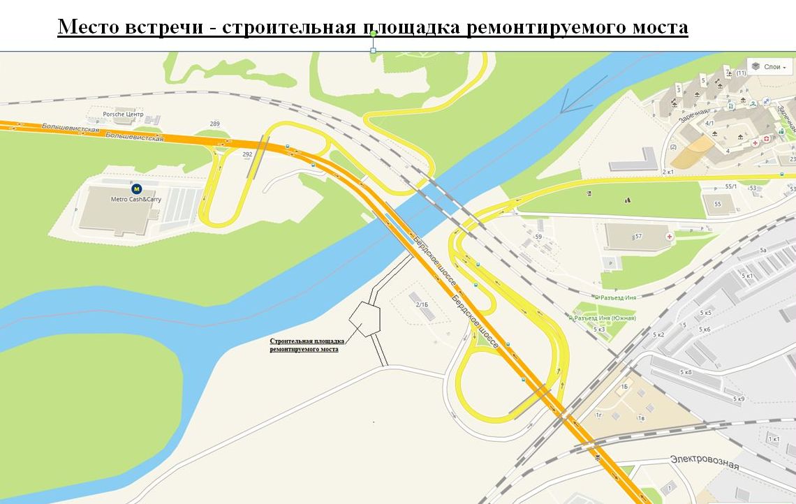 Место встречи — строительная площадка справа после проезда моста по ходу движения в сторону Бердска .