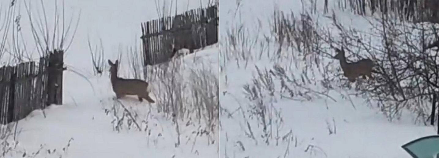 Новосибирцам удалось заснять на видео косулю, которая пробиралась сквозь снег по огородам в Кировском районе.