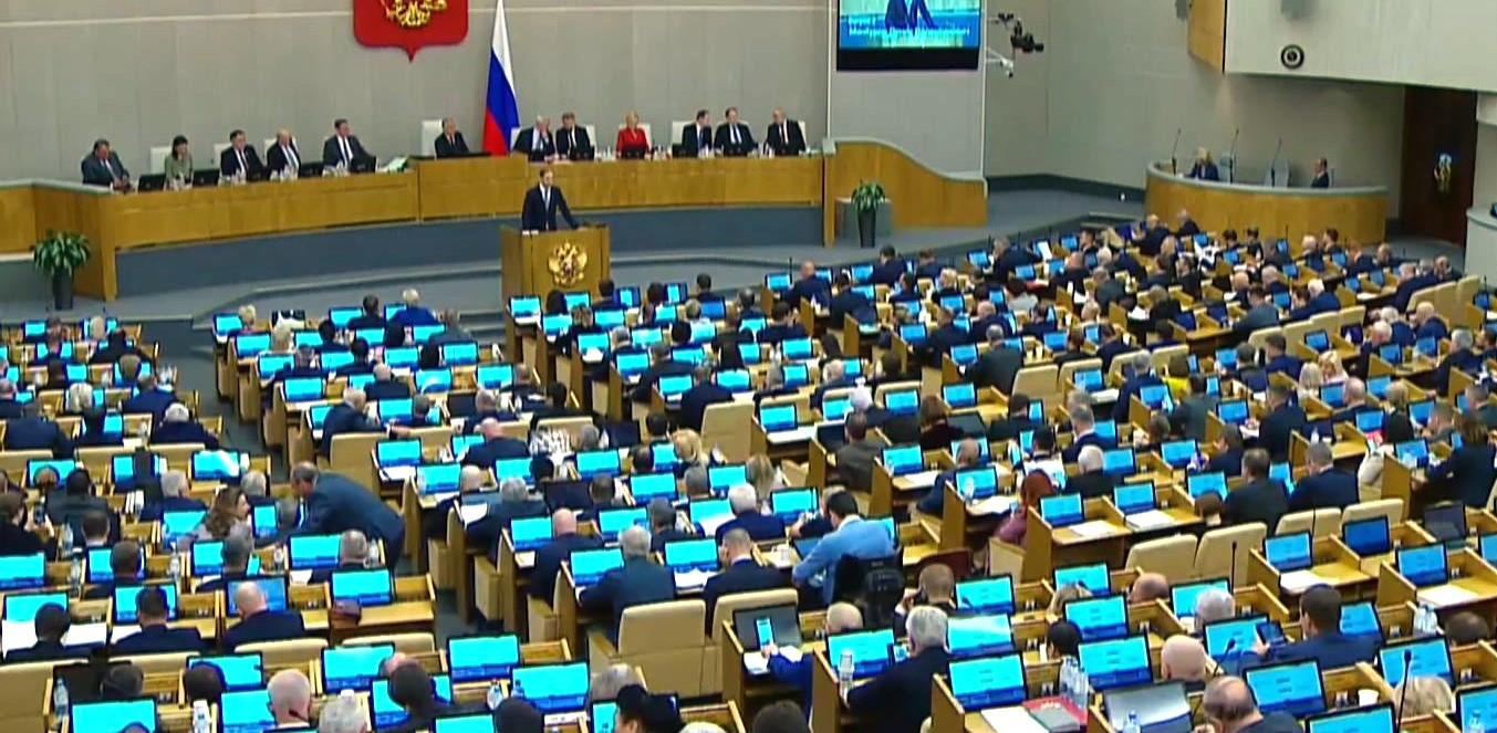 Кадр телетрансляции заседания Госдумы РФ.