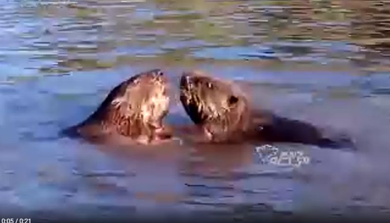 Скриншот записи Мария Здвижкова из Тальменки возвращалась с дочерью домой мимо Берди и с моста увидели баталию двух бобров.