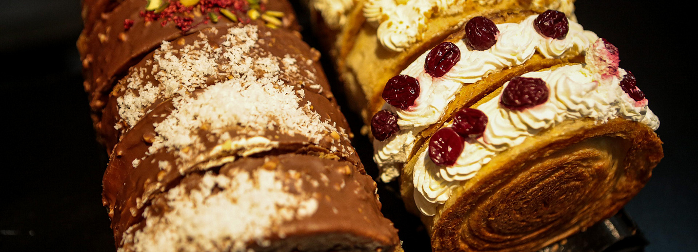 Фото: Ростислав Нетисов, nsknews.info Покорившие ТикТок спиральные круассаны начали печь в НовосибирскеНеобычная выпечка, придуманная нью-йоркским шефом-кондитером и завоевавшая популярность в ТикТоке, добралась до Новосибирска. Спиральные круассаны появились в одной из городских пекарен. Изделие закручивают из теста, в котором 96 слоёв, выпекают в форме, начиняют кремом, макают в кувертюр, украшают ягодами или орехами. По канонам, слоёная шайба должна иметь идеальную форму и «уметь» стоять вертикально на ребре.