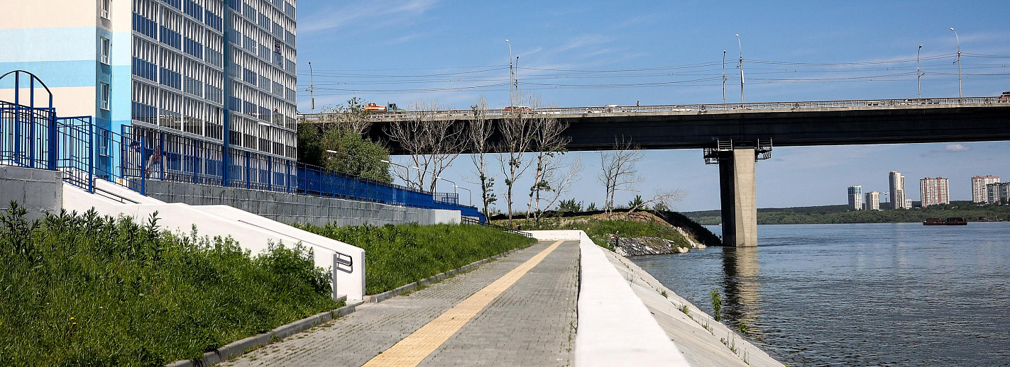Фото: Ростислав Нетисов, nsknews.infoПроект застройки береговой территории многоэтажными жилыми домами включает в себя и благоустройство набережной на всём протяжении микрорайона «Ясный берег». В итоге на левом берегу появится уютная зона отдыха у воды протяжённость более километра.