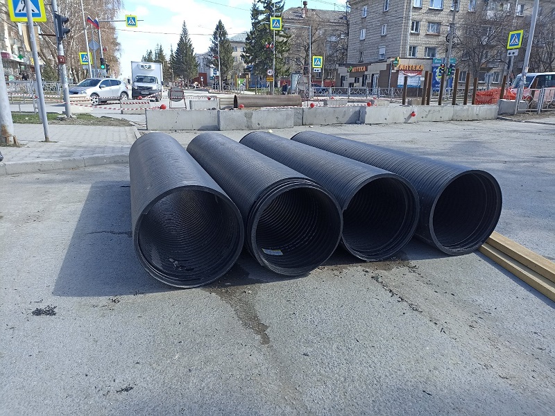 Из 22-х трёхметровых отрезков полимерной трубы, прибывшей из Москвы 26 апреля, осталось уложить четыре. Ремонт коллектора, по словам подрядчика, идёт по графику.