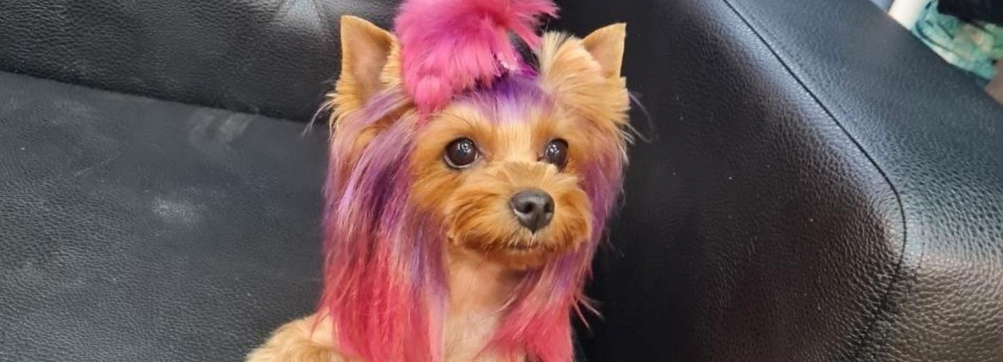 Фото: груминг-салон BarberdogЕщё одна тенденция собачьей моды — окрашивание шерсти. Как правило, питомцам пигментируют хвостики на голове и филейной части. Таким образом украшают шпицев, йоркширских терьеров, мальтезе и бишон-фризе. Оттенки для этого выбирают разные — например, фиолетовый или розовый, а иногда и контраст: лапки одного цвета, хвосты — другого. По словам грумеров, используемая краска для собак абсолютно безопасна.