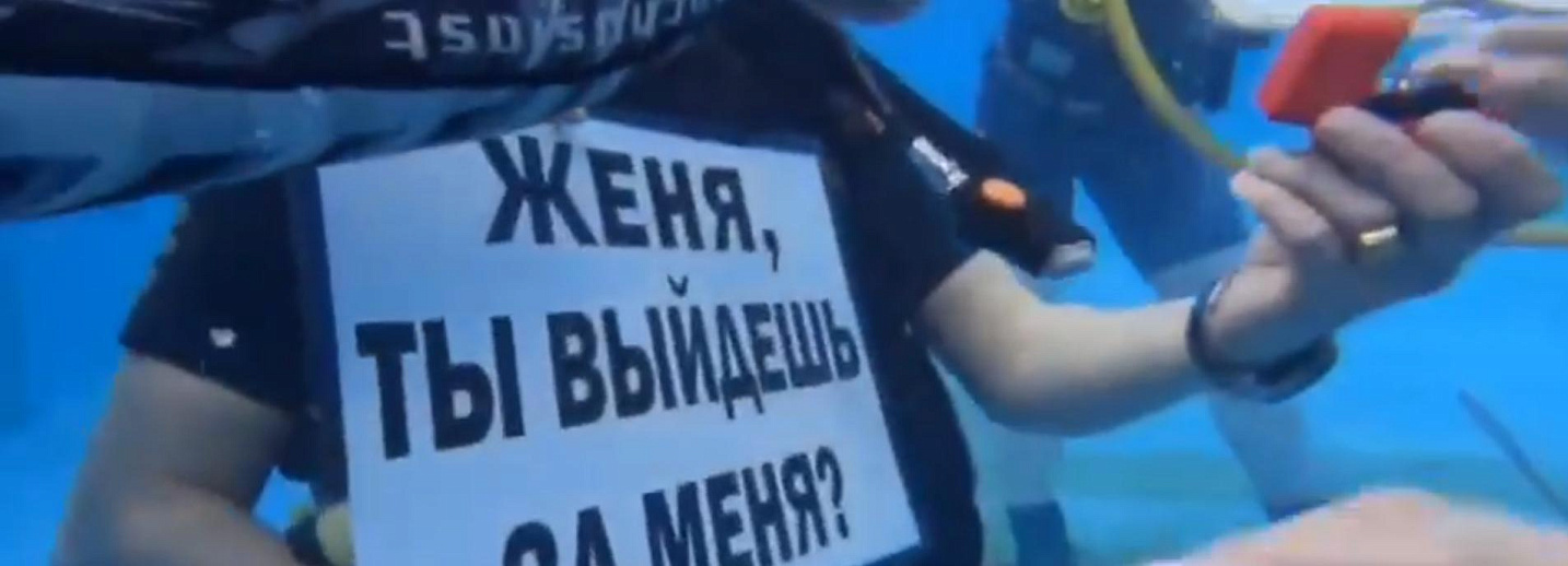 Новосибирские новостиВ пятницу, 5 апреля, рядовой с позывным Спартак вместе с девушкой надели гидрокостюмы и погрузились в бассейн «Спартак». Парень работал там до заключения военного контракта. Жених захватил с собой на глубину кольцо, букет цветов и табличку с надписью «Женя, ты выйдешь за меня?». У невесты была припасён лист бумаги с ответом: «Да». Видео романтического шоу сделал дайвинг-центр «Акваланг».