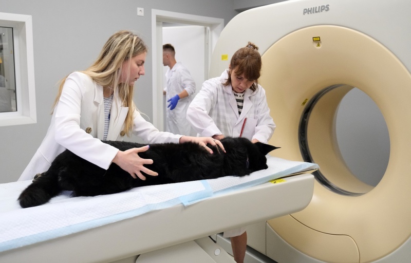 — В преднаркозном кабинете проходит санитарная обработка и осмотр животного. В наркозной палате – кислородная камера и аппарат для контроля за основными жизненными показателями пациента. Томографический зал оснащен современным высокоточным компьютерным томографом и инжектором для автоматического введения контрастного вещества или фармацевтических препаратов. Информация с КТ-томографа поступает в пультовую, откуда осуществляется управление аппаратом. С помощью компьютера или переносного планшета можно управлять физическими параметрами исследования, изменять проекции оси аппарата, моделировать высоту стола, на котором лежит «пациент». Обработка данных, создание реконструкций, редактирование проекций и трехмерное моделирование изображений всех структур и частей тела животных производится на серверной станции.